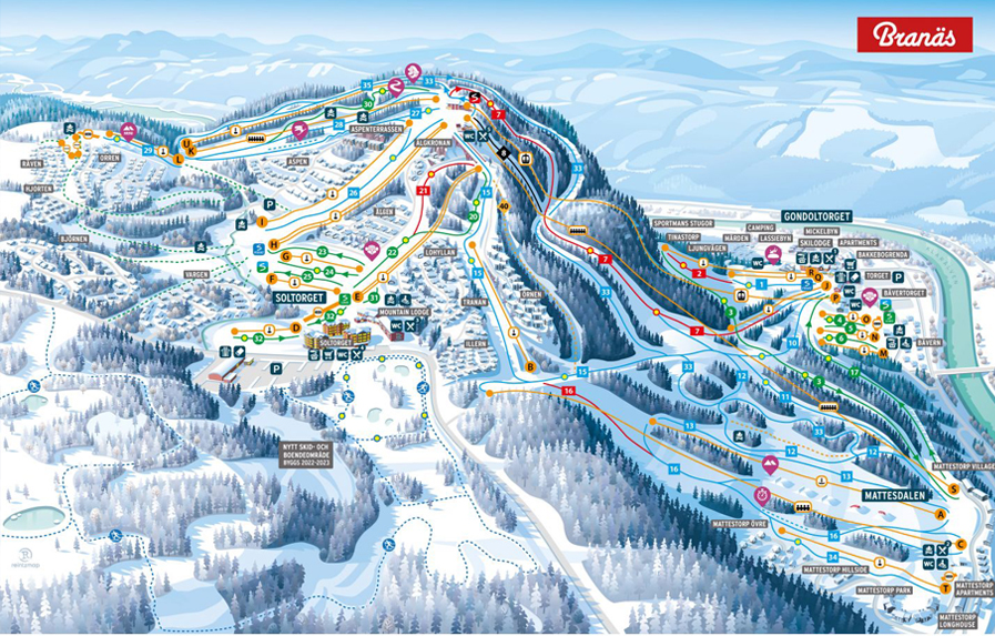 Branäs pistekort – Detaljeret guide til pister, lifte og skiområdets opbygning.