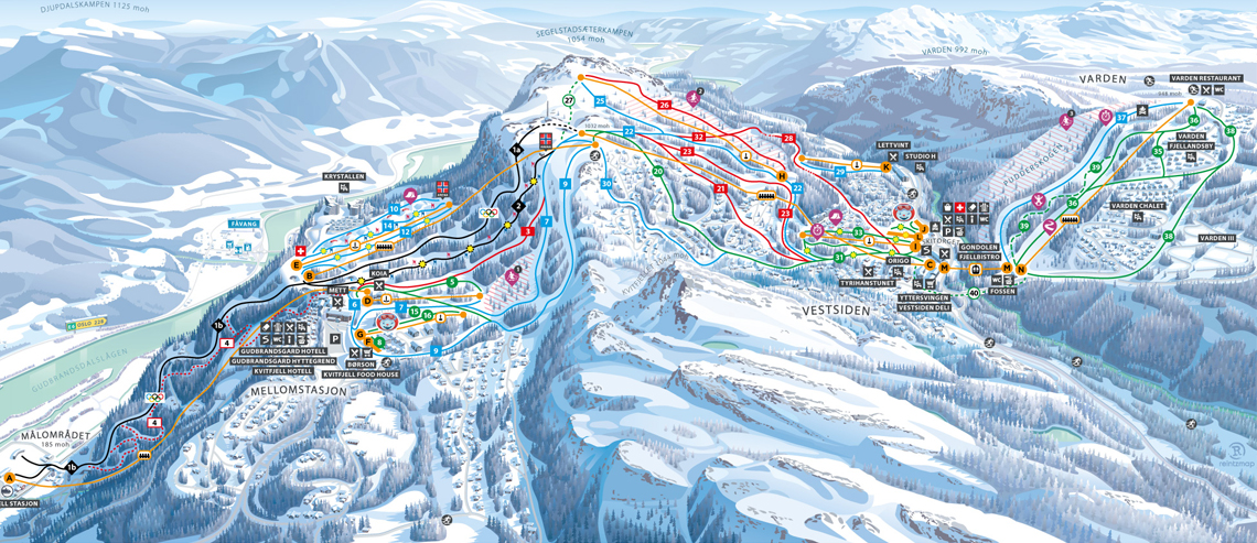 Kvitfjell er et af Norges mest velrenommerede skiområder og er særligt kendt for sine krævende pister og sin rolle som værtssted for World Cup i alpint. Pistekortet over Kvitfjell viser et område, der er opdelt i tre hovedsider – Østsiden, Vestsiden og Mellomstasjonen – som tilsammen giver et varieret og spændende terræn for både øvede og mindre erfarne skiløbere. Området er perfekt for dem, der søger fart, teknik og udfordringer, men rummer også rolige og familievenlige nedfarter.